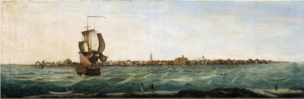 Above: Painting by Thomas Leitch of the ship London in Charleston, SC